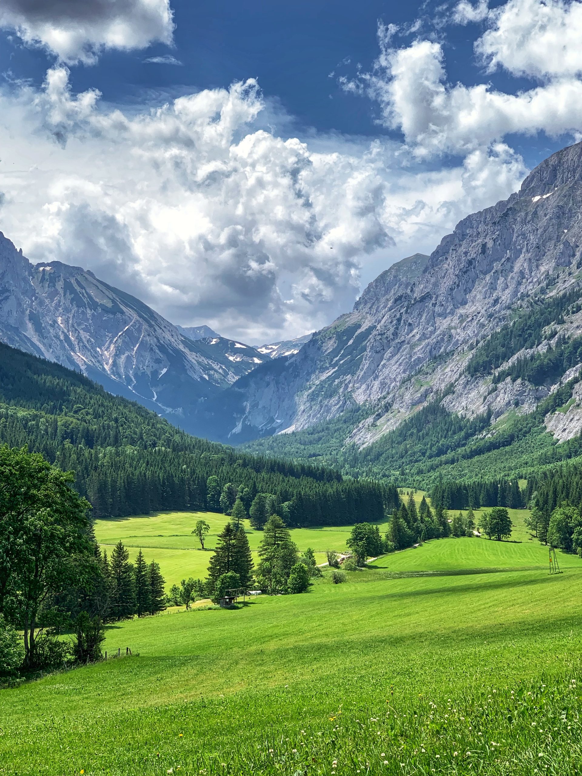 Mountain valley during sunrise. Natural summer landscape